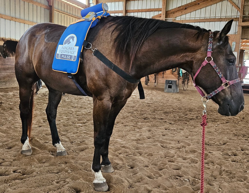 Niagara Equissage Pulse hand-held system is a cycloid vibration tool that provides relief for chronically sore backs, improves lymphatic drainage, and activates your horses muscles in a gentle way to reduce recovery time.